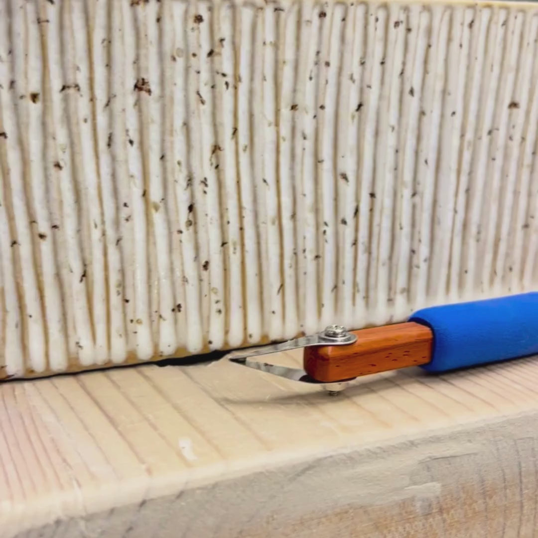 Ett smidigt skärverktyg för dig som vill göra skarpa linjer, rena spår och tydliga markeringar i leran. Blir bäst resultat när leran är läderhård, men går också direkt på mjuk lera.